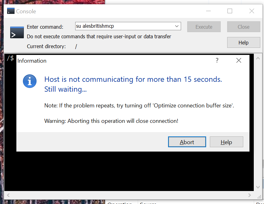 SCP login hangs with "su" command