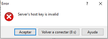 How can I solve the issue? I try to connect to another server and works correctlyServer's host key is invalid
