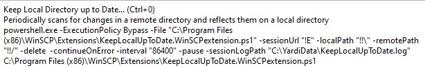 So I have a command that uses the "Keep local files up to Date" template. When I start it from within WinSCP and it runs the script, a power shell window popups up, it runs the commands and waits 24 hours to run the script again. This all works great until the computer is rebooted for updates or what ever reason. How do I turn this command script into something that (1) could be run on startup and (2) does not require the user to be logged in. I've attached a print screen of the command in WinSCP. Any help would be appreciated.