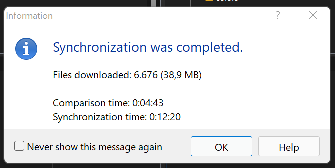 And after finished synchronization it showed a longer comparing time. Instead 3:35 its shows 4:43 minutes.