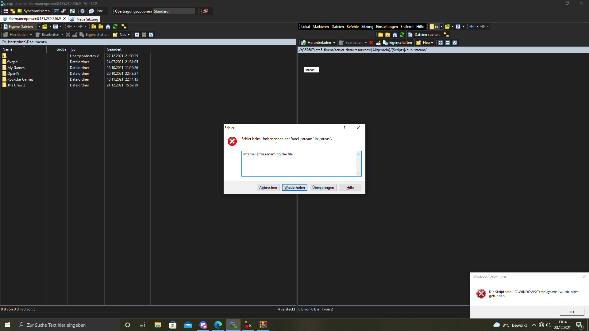 Hello, I have a problem when I want to move the folder/file to another folder comes this error message:Internal error renaming the file How can I fix this