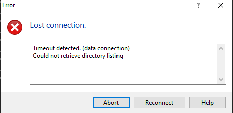 Hello, every time I try to connect my WinSCP it says Lost Connection. Sometimes it connects pretty well. Once I open any file it is empty, after couple of seconds a Lost Connection tab pops up. Then it reconnects itself and a fairy tale without end. I checked my internet speed couple of times, but it has the same speed as it was before when my WinSCP was working. Also I can not drag and drop my new files to WinSCP. If somebody could help me it would be very grateful.