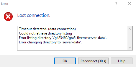 Hello, every time I try to connect my WinSCP it says Lost Connection. Sometimes it connects pretty well. Once I open any file it is empty, after couple of seconds a Lost Connection tab pops up. Then it reconnects it self and a fairy tale without end. I checked my internet speed couple of times, but it has the same speed as it was before when my WinSCP was working. I have done troubleshoot and Firewall thing, no one of them helped. If somebody could help me it would be very grateful.