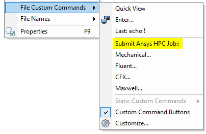 Description: "Submit Ansys HPC Job:" should just be a label, not a real command. Ideally, the commands that follow should be a sub-menu (like the New, Download, and Edit buttons).