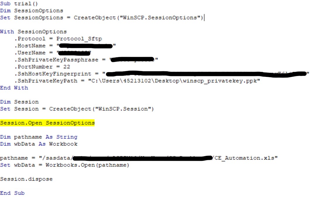 I wish to create a macro that would automatically open Excel file in the WinSCP.