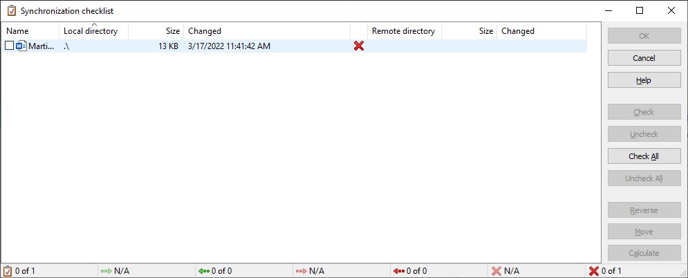 Even though "Delete Files" is unchecked, the synchronization checklist will flag a file for deletion on the local side because it does not exist on the remote side. I am trying to set local as the target.