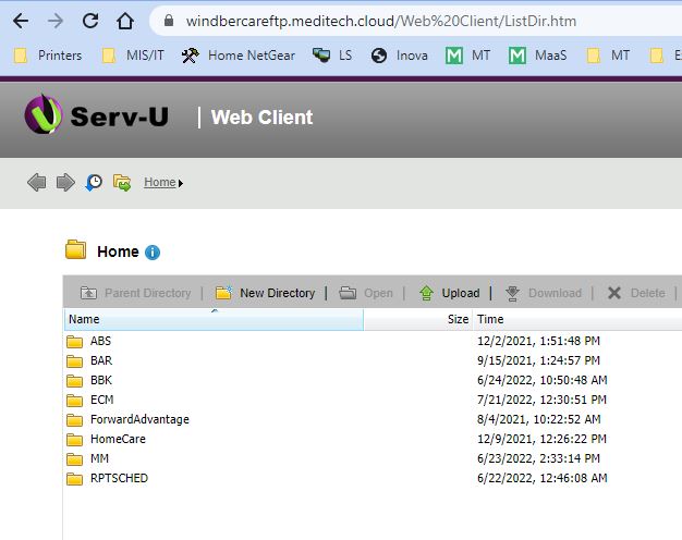 Description: Screen shot of folders available via browser.