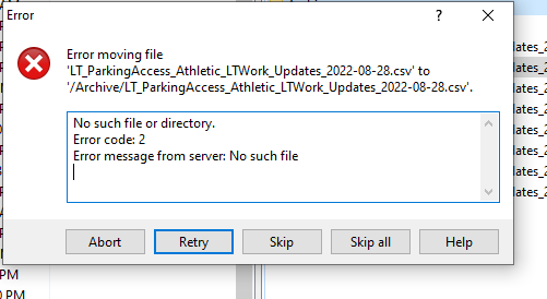 I have .NET application from which I am trying to move file from root folder to some other folder. This was working before but suddenly stopped working. It gives error