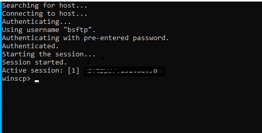 C: cd C:\Program Files (x86)\WinSCP .\winscp test@10.10.10.10 /password=hello put -delete "T:\IMEI-SFTP\Batelco\stcMEIBlock*.csv" /IMEIBLACKLIST/BATELCO/IN/ exit