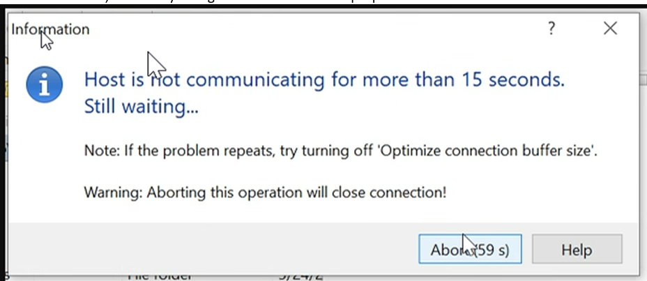 I am keep getting below error while operating on WinSCP 5.19.6