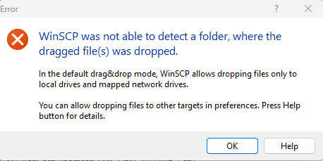 When I try to drag&drop a file to the windows desktop a message pops up saying "WinSCP was not able to detect a folder, where the dragged file(s) was dropped ...."