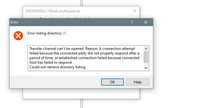 Transferring file to: 85.220.228.104:2222 (edi.multisped.de) FTP-TLS/SSL Explicit Encryption Port 21