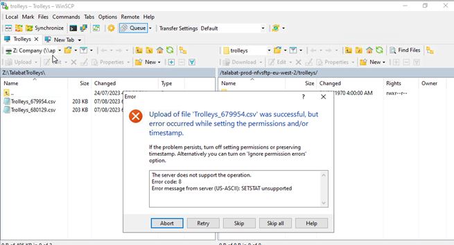 We have an automated script running and recently we have been getting an error message for Time stamp while the batch file has finished executing and all files are transferred to the remote directory.