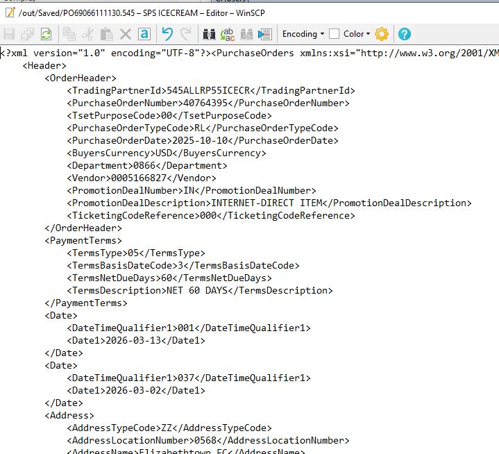 We have a very strange problem. I can open WinSCP (V 6.5.5) in Commander mode and go to a standard FTP (port 21). There are about 40 XML files in the folder. When I double-click on a file to view it, the file has about a 90% chance of showing complete. About 10% of the time, part of the file at the beginning is missing, and sometimes part of the file at the end is missing. If I click on another file and come back to the offending file, it will often open in its entirety. If I download a file to my hard drive, it also has about a 90% chance of being complete. This behavior is shown throughout the FTP site. I have tried clearing caches, uninstalling and reinstalling WinSCP, and nothing has fixed this. I should also say that our ERP is erroring out when trying to read the files, so it is experiencing the same issue. The vendor who is providing the FTP and is placing the files on the FTP swears they do not see the problem at their end. Any ideas would be greatly appreciated!!