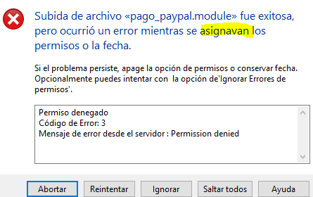 Debe corregirse la palabra asignavan por asignaban.Subida de archivo <<nombrearchivo.txt>> fue exitosa, pero ocurrió un erro mientras se asignavan los permisos o la fecha.